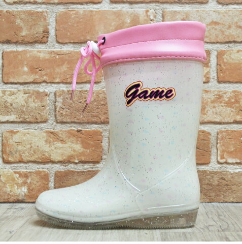 説 明 人気のGameから新作レインブーツが登場!靴の表面にラメがついているのもオシャレなポイント!防水なので、雨の日はもちろん雪の日でも安心!履き口の紐を結ぶことで上からの雨の浸入も防ぎます。